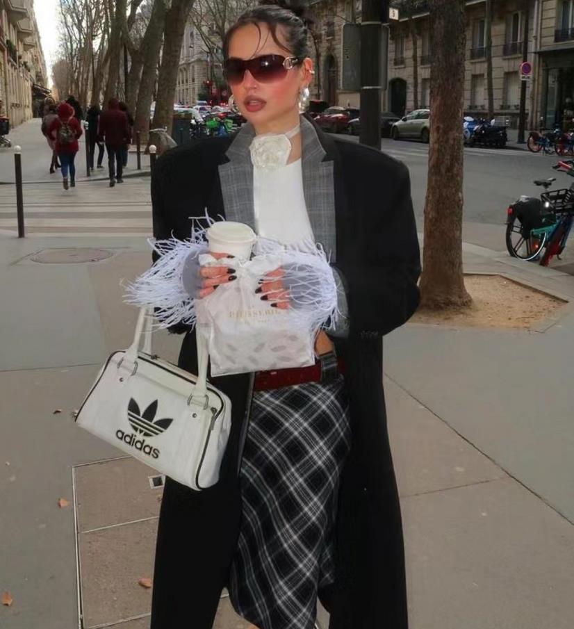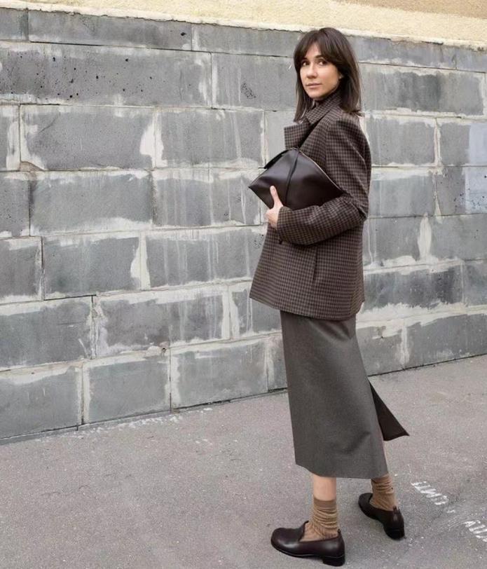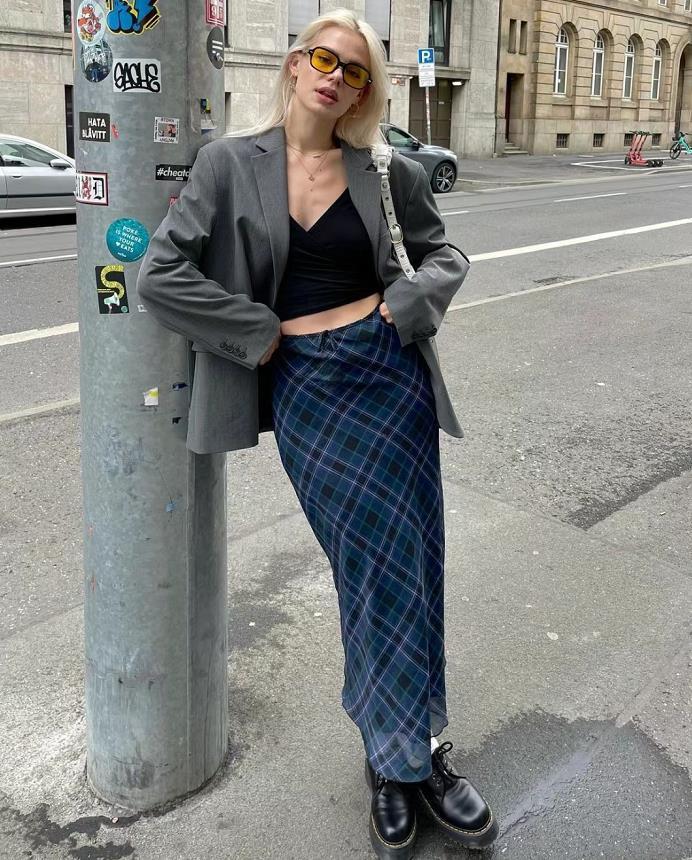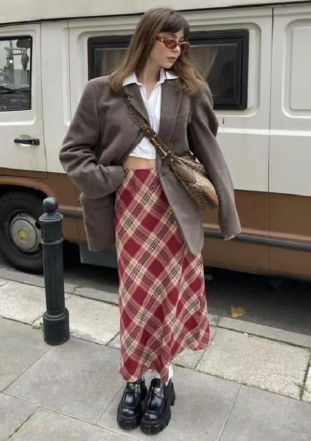 格紋裙自帶復古氣息,今年這種風格的打扮也是深受衆人喜歡,高腰格紋半身長裙,對於身材還是有些要求的。胯寬的身材不建議輕易嘗試,搭配西裝外套來配氣質感十足。