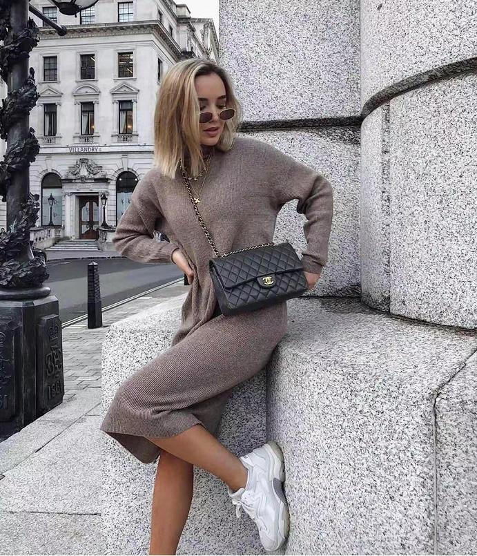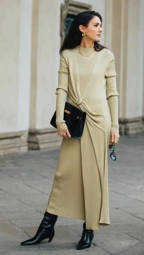 如果是打底的毛衣裙,則可以作爲大衣或羽絨服的內搭,即便是將外套脫下,也很好看。