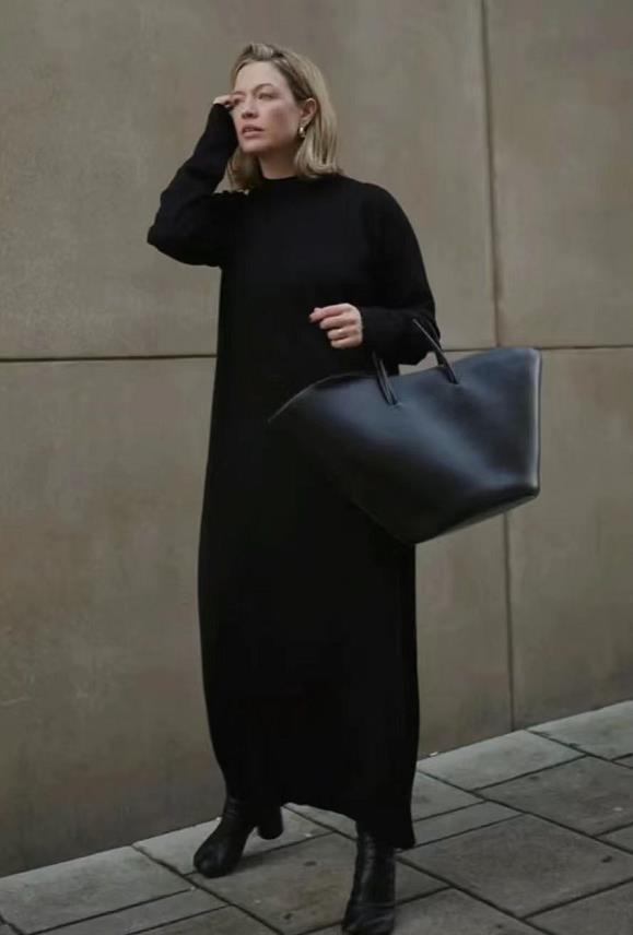 黑色毛衣裙,看起來或許很沉悶,但百搭經典和顯瘦都是真的,寬鬆的裙身襯托之下,可顯瘦藏肉了。柔軟舒適的材質,溫暖又輕鬆。