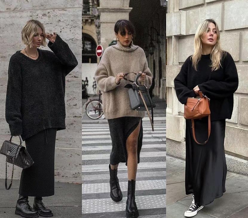 同時也很顯優雅氣質,上身利用起疊穿,或者是短款外套來配,上短下長的思路永不過時。