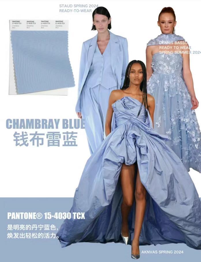 錢布雷藍也是2024年春夏流行色之一,這種明亮的丹寧藍色,可以煥發出輕鬆的活力。最重要的是對於膚色一點違和感也沒有,黃黑皮都能駕馭。