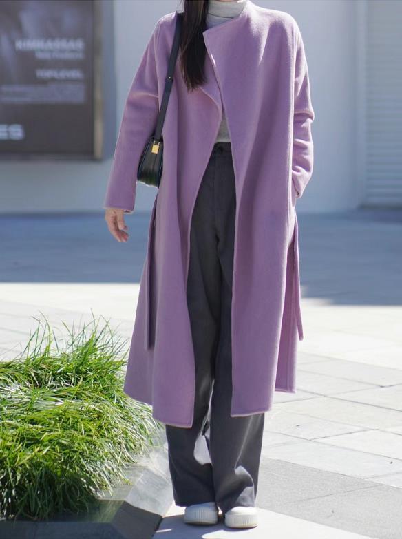 誰懂啊,這麼一件淡紫霧色的大衣看起來也太溫柔了,氣質感滿滿,過膝的中長款,小個子女生也能輕鬆駕馭。