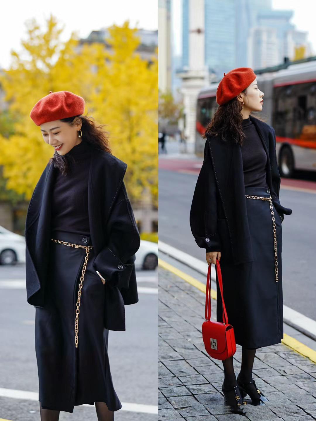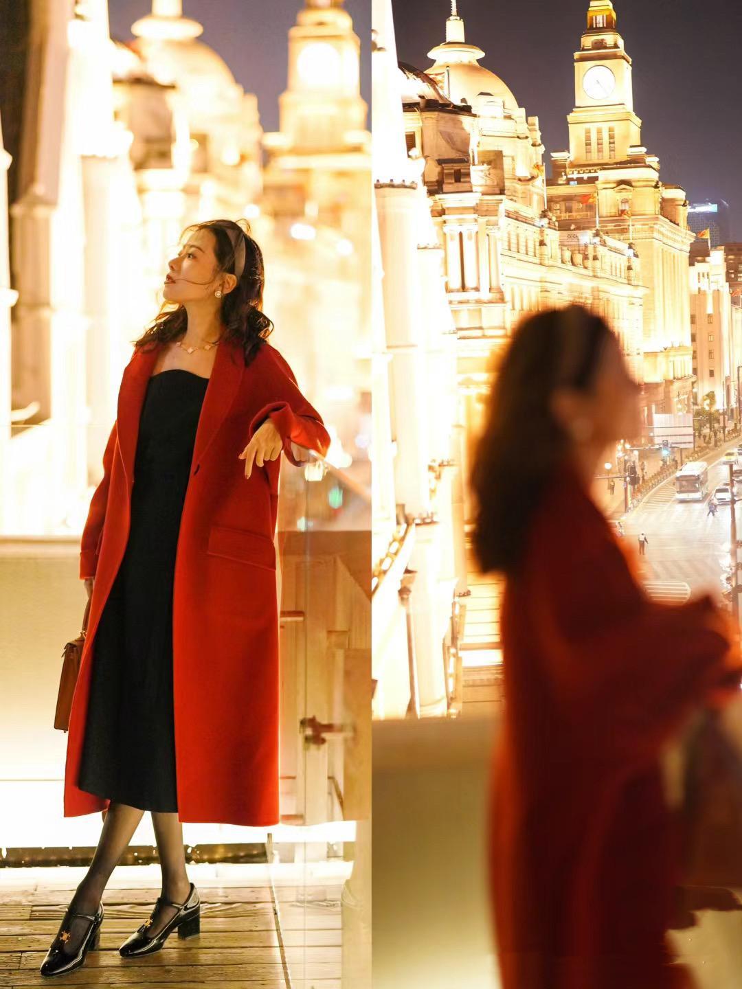 優雅顯氣質的紅色大衣,最容易穿出高級的女王範了。赴一場盛宴,或者是日常的通勤上班、主持會議,都可以選擇紅色大衣+黑色連衣裙的組合,優雅端莊、氣場高級。