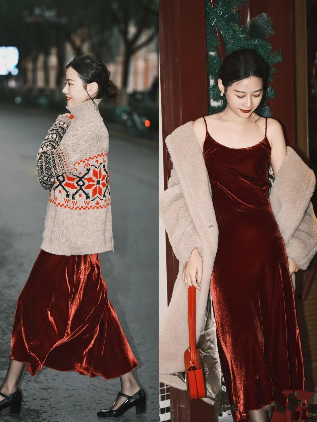 年底的時候,各種聚會也是多了起來。想要豔壓羣芳、一條絲絨吊帶裙就是不錯的選擇。絲絨吊帶裙時髦又貴氣,彰顯着復古名媛範。