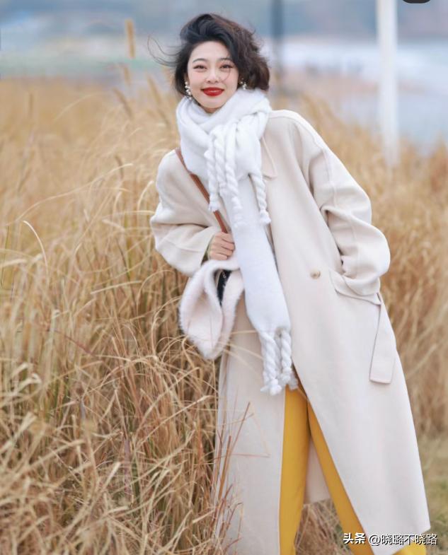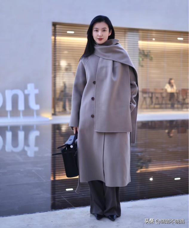 大量感的呢大衣和小量感的圍巾搭配,可以使得整個造型更加輕盈優雅一些,但是大衣如果更加修身一些,那麼選擇中等量感的圍巾就好,上下量感十足,整體營造上纔會更加吸睛洋氣一些,還可以更加顯瘦苗條。