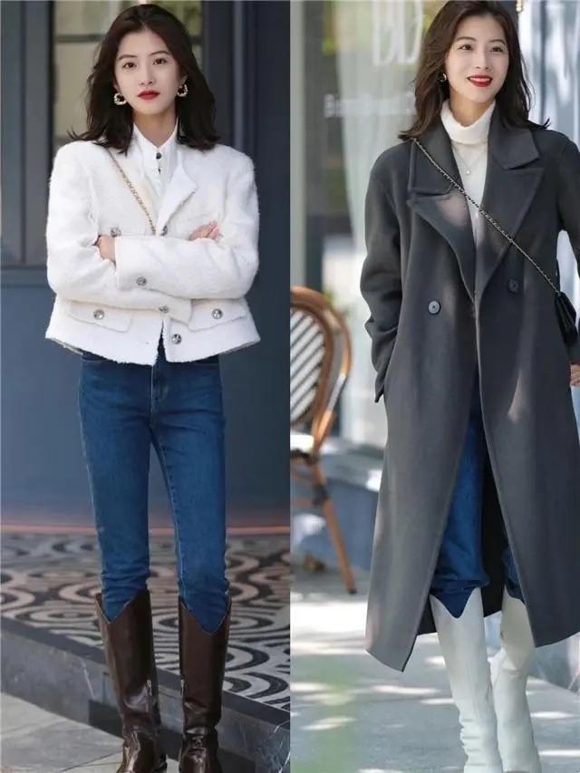 如果喜歡優雅知性的穿搭,我們可以嘗試稍微低調的風格。比如修身的牛仔褲搭配厚底的長靴,不僅更加顯高還特別的利落洋氣。