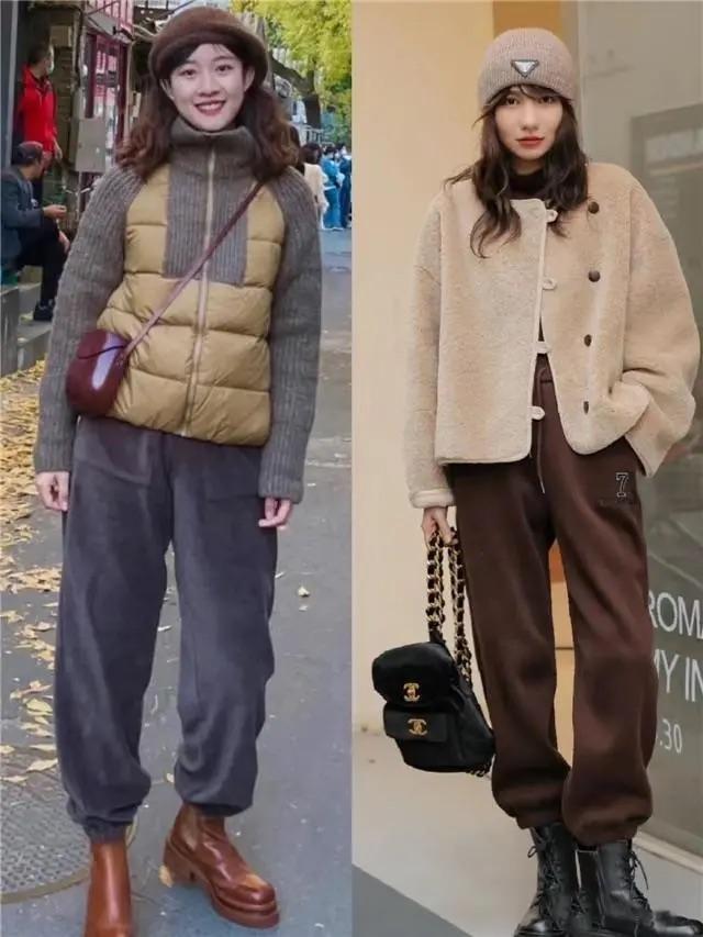像棕色系的毛呢束腳褲,搭配黑色馬丁靴,更多了時尚感。棕色束腳褲面料厚實、穿起來防風又保暖,黑色馬丁靴的組合,還格外的俏皮洋氣、弱化年齡。