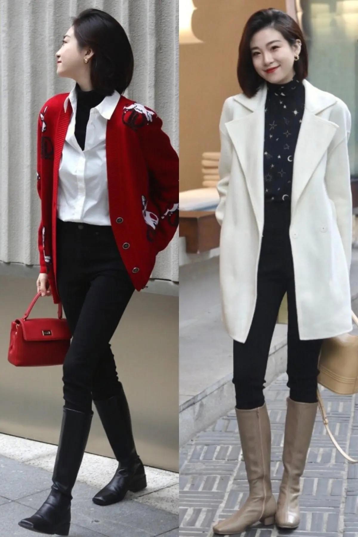 其實長筒靴的搭配,還可以修飾小腿線條。如果小腿肉感比較強,我們都可以嘗試搭配長筒靴來穿着,越是靴筒細窄的長筒靴,顯瘦效果越強。