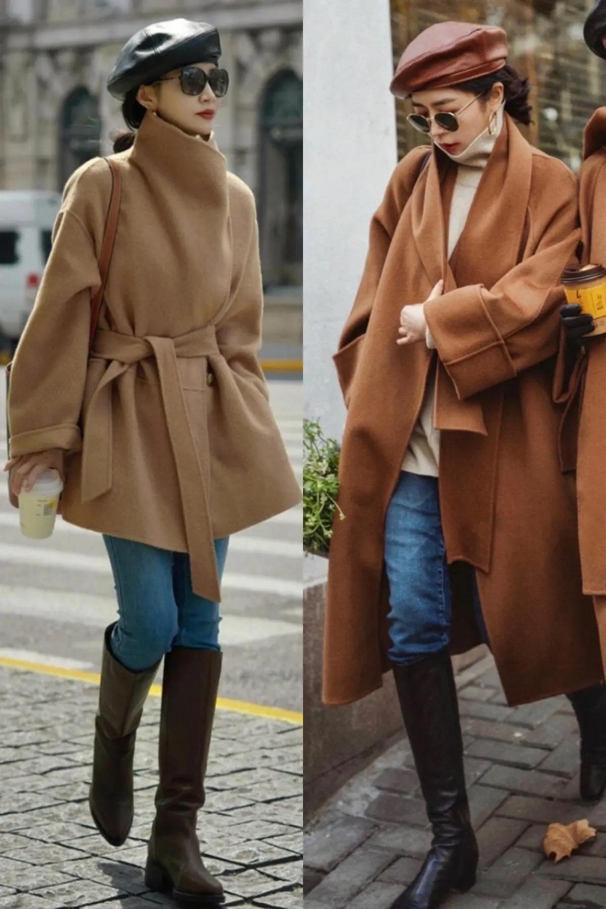 駝色系的大衣,最是優雅端莊。沉穩內斂、知性大方的駝色大衣,配上高腰的半身裙,剛好可以秀出雙腿優越的線條美。