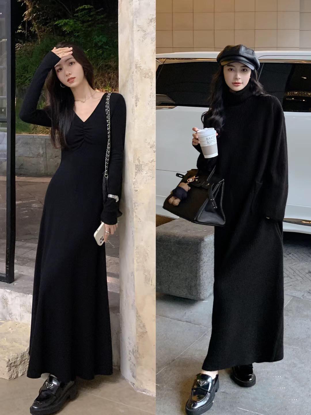 冬天裏的黑色連衣裙,更推薦大家選擇過膝的長度。尤其是過膝及踝的長度,更多了幾分穩重與大方。不管是方領的連衣裙,還是小高領的連衣裙,都時髦耐看。