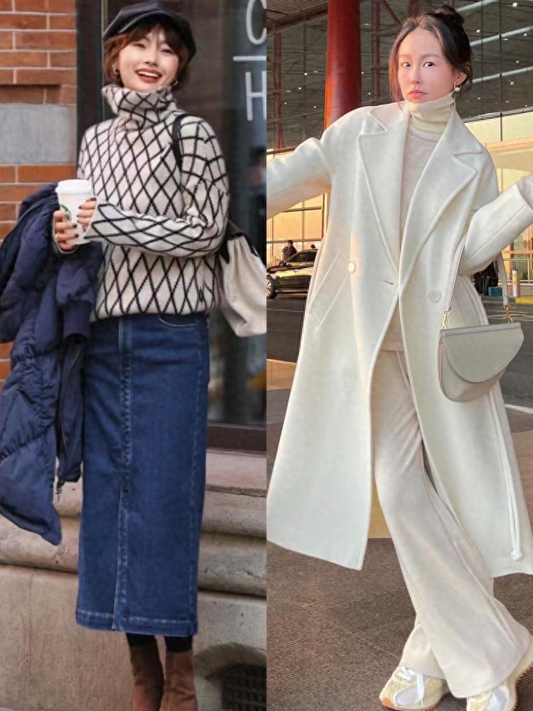 溫暖的雙面呢大衣,可以配修身的打底衫來穿着。修身的打底衫,帶有微彈的效果、對於身體的包容性也會更強。鬆緊對比的穿着方式,大方又洋氣。