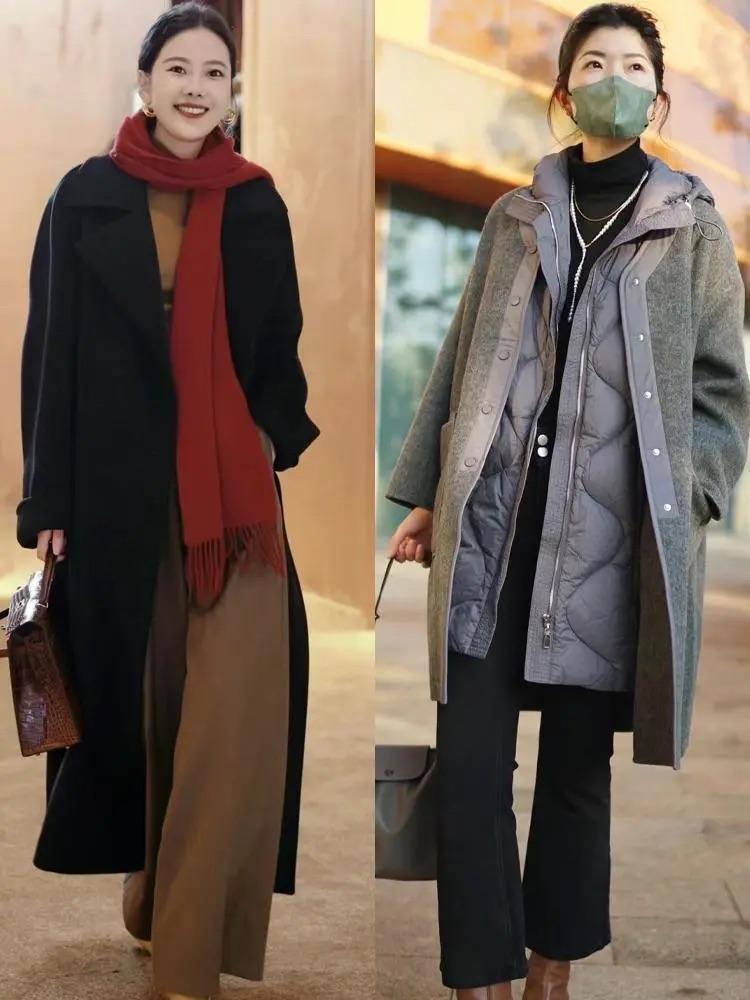 雙面呢大衣+修身打底衫