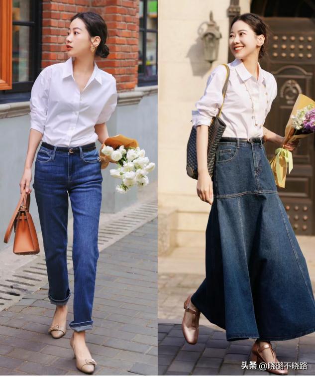 大家在穿衣搭配當中,一定要學會揚長避短的穿法,比如這種長短結合的搭配,可以更好地拉伸比例,顯得你又高又瘦,但是長與短只是相對而言,具體還要結合身材來看,但是記住選擇高腰款式的裙子或褲子,永遠都不會出錯。