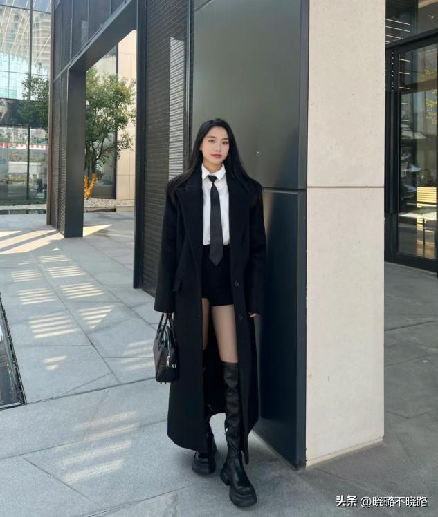 如果上半身肉肉比較集中,那麼選擇一件窄長的過膝大衣,就恰到好處輕鬆的遮擋了上半身的問題,下面配上超短裙與長靴營造出下半身失蹤的感覺,顯得整個人更加的利落洋氣但是記住超短裙最好選擇大腿1/2處,不至於顯腿短腿粗。