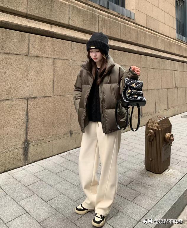 羽絨服與闊腿褲是今年冬季大熱的cp,隨便穿穿就很好看,但是建議大家直接入手短款羽絨服與高腰闊腿褲,上下的長短對比鮮明,輕而易舉的營造出了二八分標準比例,要比你原有的腰身更加顯高一些。