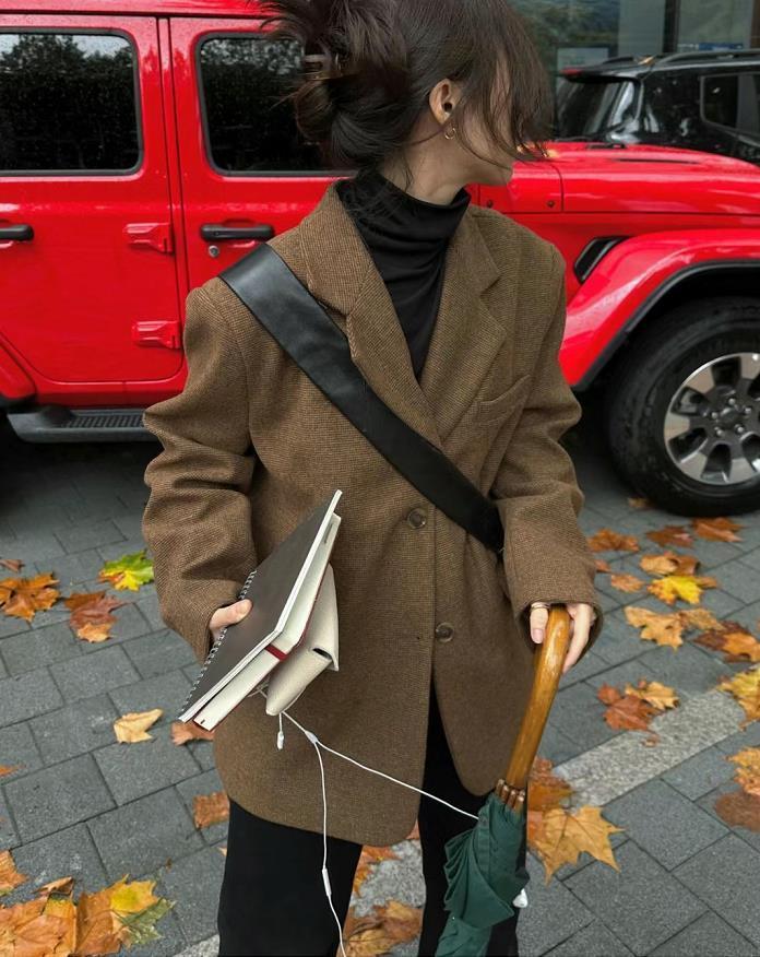 老錢風的穿搭,全身上下都透着一股復古與精緻,就算是要上班也要精緻和優雅。西裝的版型是偏寬鬆的類型,一般像這種款式都很不挑人,休閒舒適又藏肉。