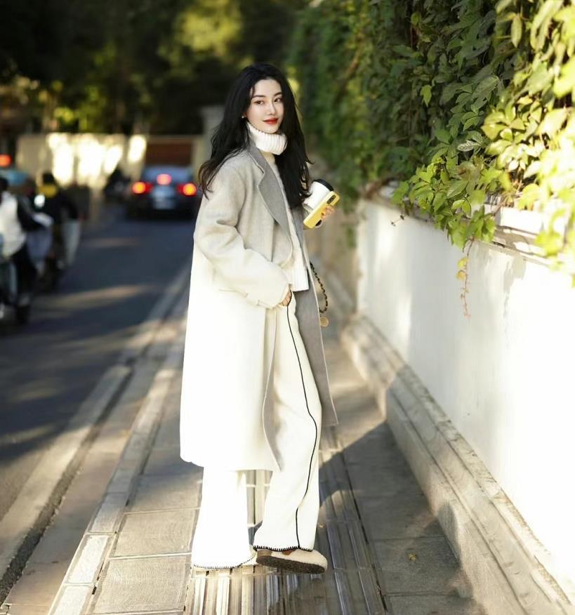冬日氛圍感穿搭,看起來就很絕啊,越是降溫越得走路帶風,奶白色長大衣,就這麼敞開來穿,氣質拉滿。內搭粗棒針織高領毛衣,全身捂得嚴嚴實實的,很保暖。