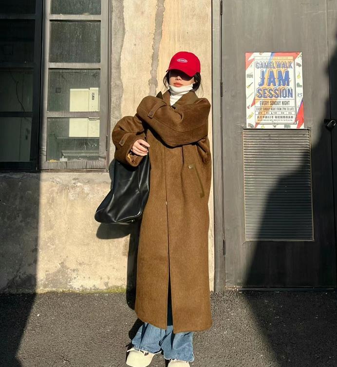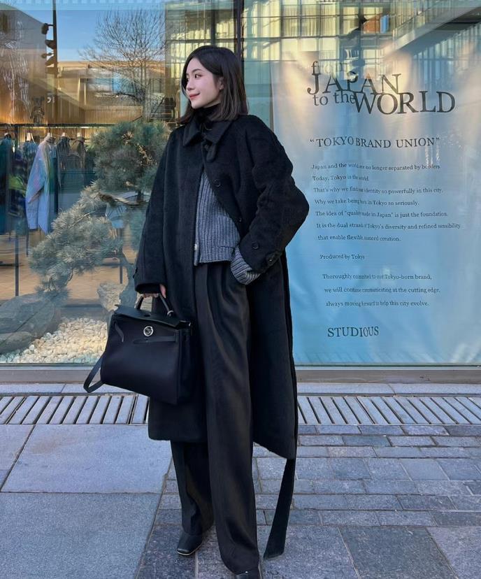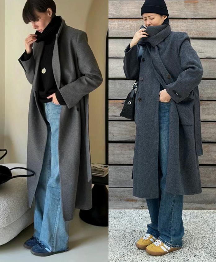 冬天的鬆弛感都是大衣給的,像這種寬鬆版型的大衣,真的適合所有的身材穿。在挑選長度上,一定要根據自己的身高去選擇。