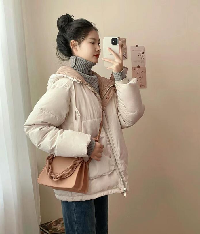 150小個子也可以穿出160的既視感,顯高挑又好看,短款羽絨服外套,專屬於個矮姐妹的。內搭白色高領打底毛衣,真的很耐看,增加層次又保暖。