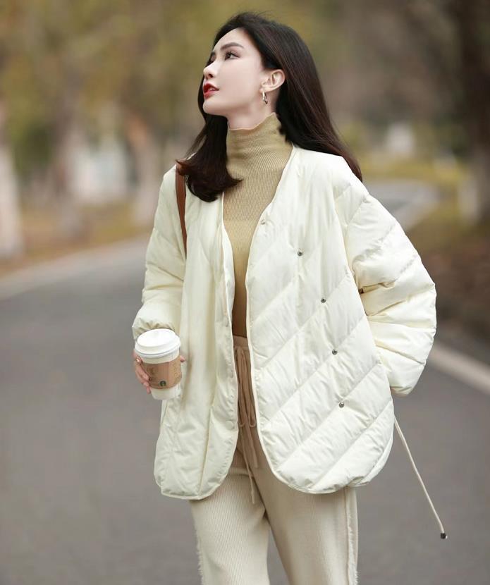 短款羽絨服+直筒褲,保暖又好看,這麼一整套的顏色看起來溫溫柔柔的,菱格絎縫設計的款式,上身後完全不顯臃腫。