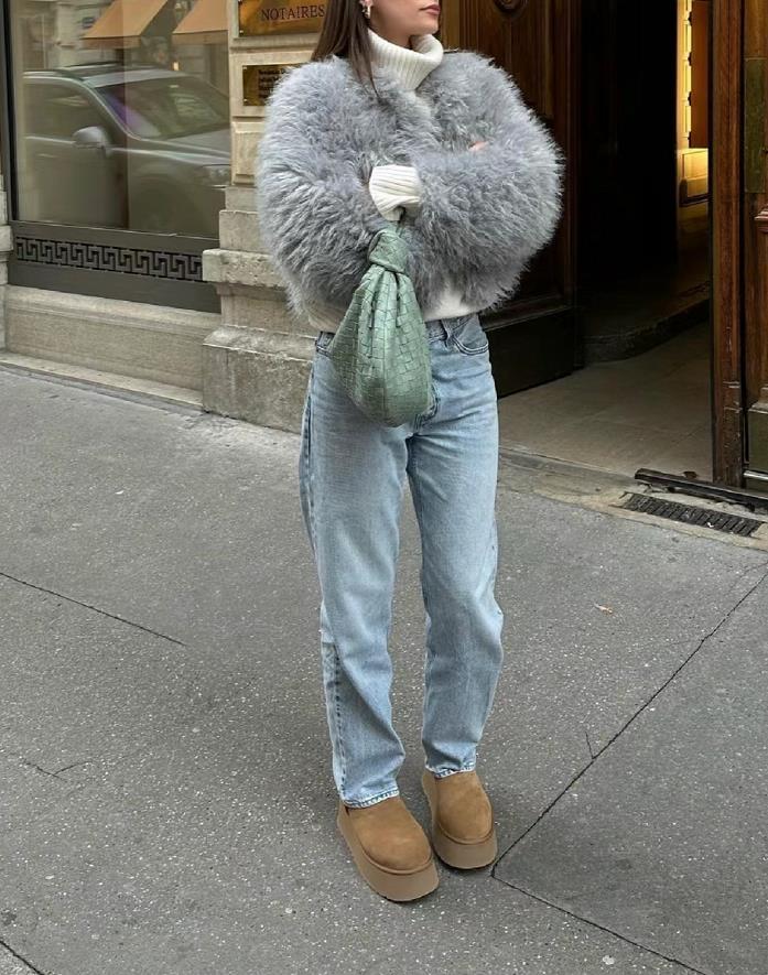 毛毛外套真的是最適合冬季的一種外套了,摸起來手感舒適,穿起來更是保暖,利落的短款,穿起來提高腰線比例,又能延長下身的腿型線條。
