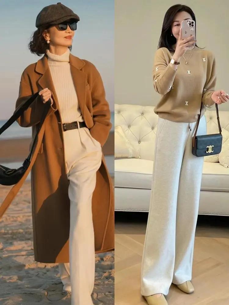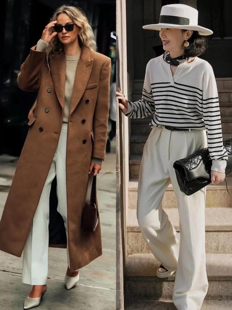 高腰的闊腿褲,經典又耐看的色系,更容易穿出強大的氣場。一條米白色的闊腿褲,可以配直筒的款式、也可以配腰胯部打褶的剪裁,高腰的闊腿褲配毛衣穿着溫柔又洋氣。