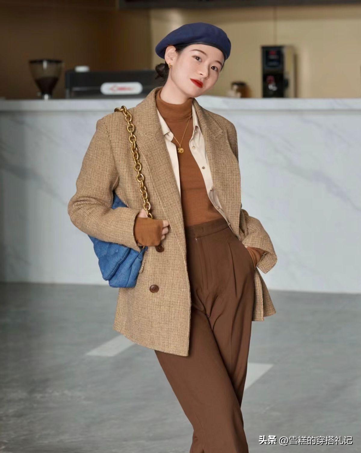 第1款建議各位中年女性一定要入手進行搭配的絕對是又高級又利落的毛呢西裝的,這一款單品相比較於大衣而言整體的利落感會更足一些,而且百搭性也比較的高,最重要的是對於我們的身材狀態和氣質都有着非常獨特又個性的修飾魅力。