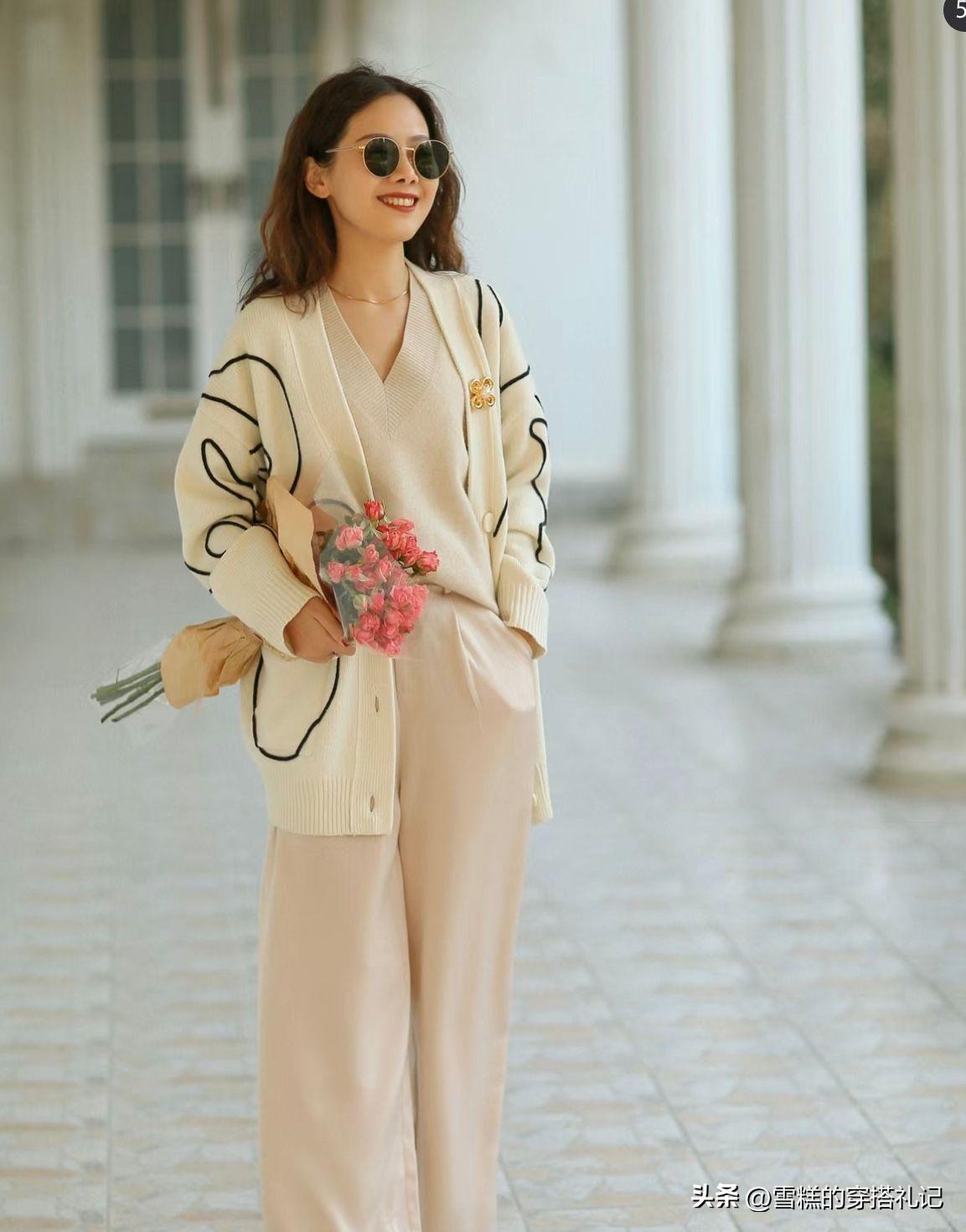 如果是在日常出行又或者想要穿的更加便捷一些的時候,那麼下半身就推薦大家可以加入一些寬鬆且拖地的優雅型褲裝了,淺色系的搭配與其是最具有契合度的,也建議大家在色系的運用當中上下都要偏向於更基礎百搭且穩定的存在。
