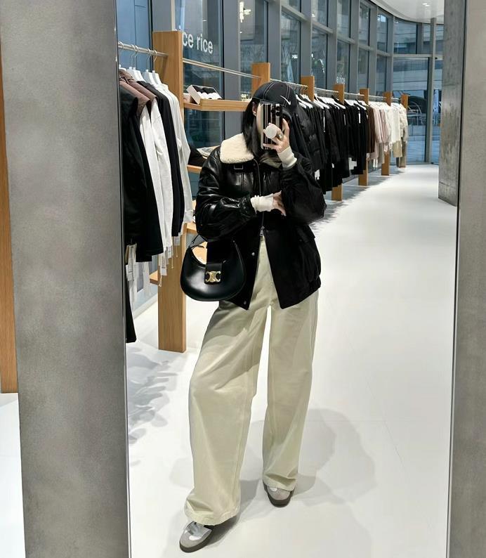這是一件屬於冬天的皮棉服外套,防風時髦又保暖,寬度適中的版型,最藏肉顯瘦了。內搭打底衫+襯衫,疊穿的組合就是顯層次。