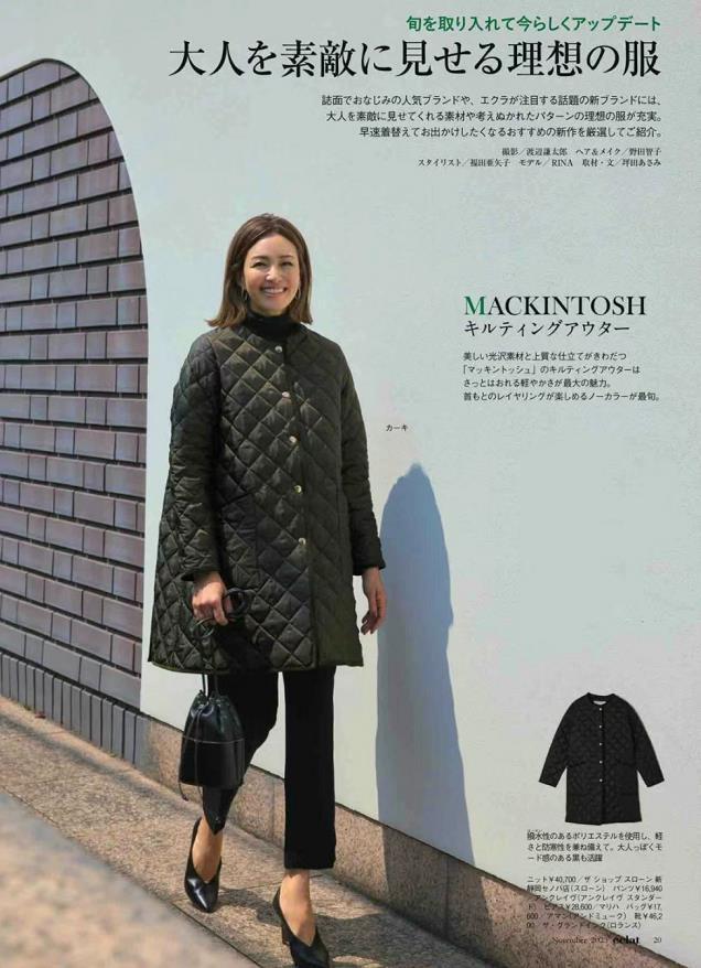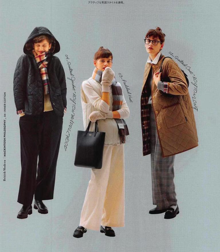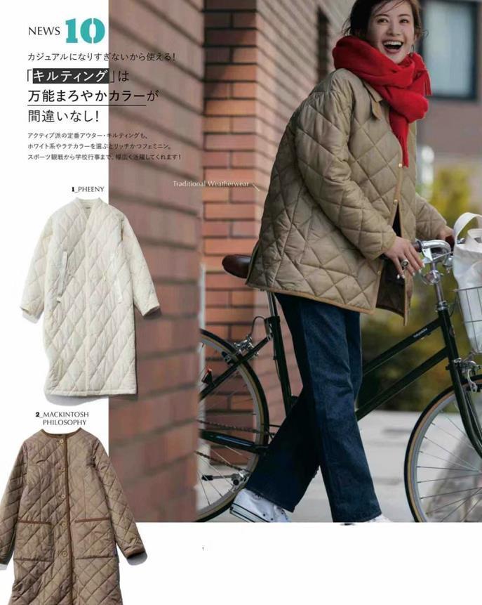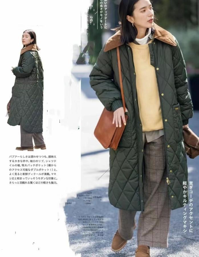 不管是什麼款式的菱格絎縫棉服,只要你懂得搭配,照樣可以穿得很時髦出衆,內搭利用起疊穿,可以減少造型的單一與沉悶。下裝的搭配,根據自己身材來決定就好。