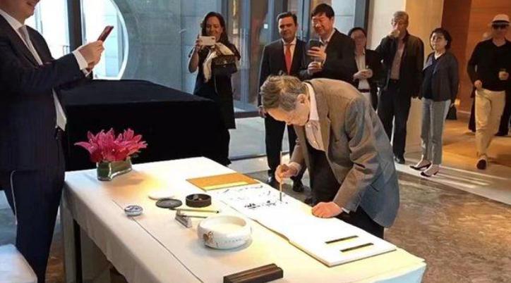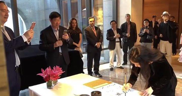 翁虹提筆寫完,活動也進入到高潮,主辦方特意將他們寫的字畫給裱了起來,成爲了他們珍貴的回憶。