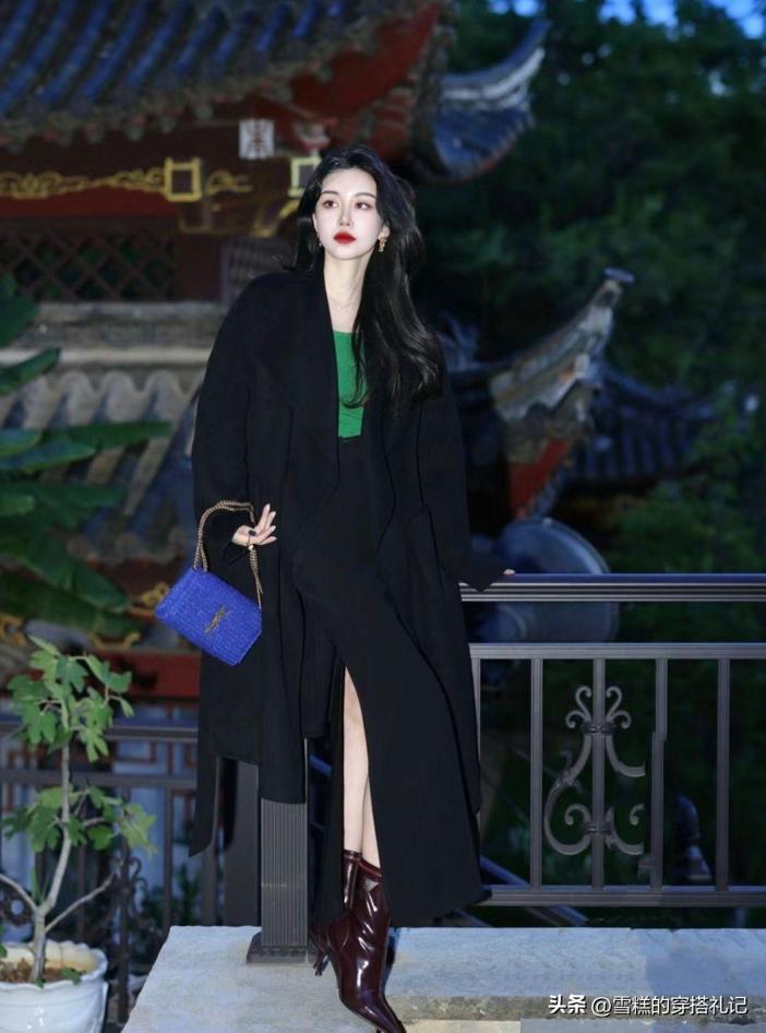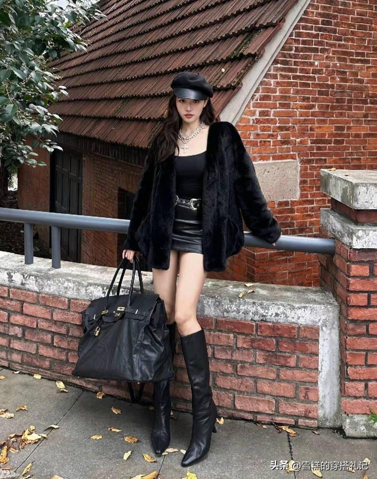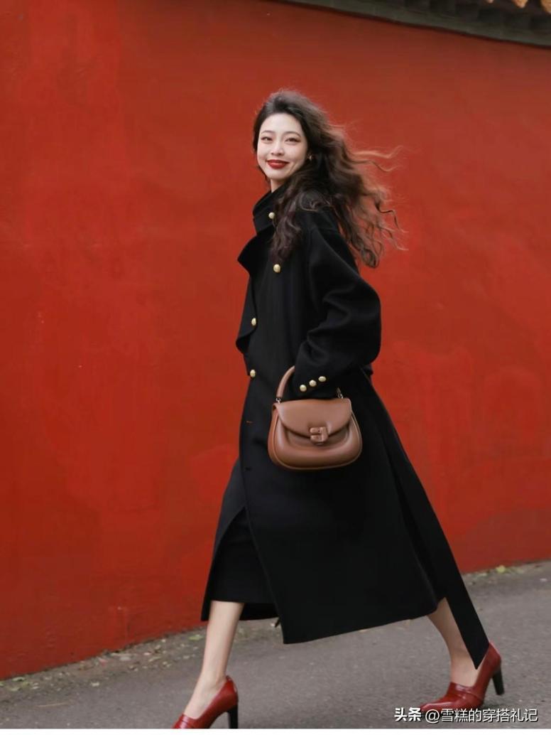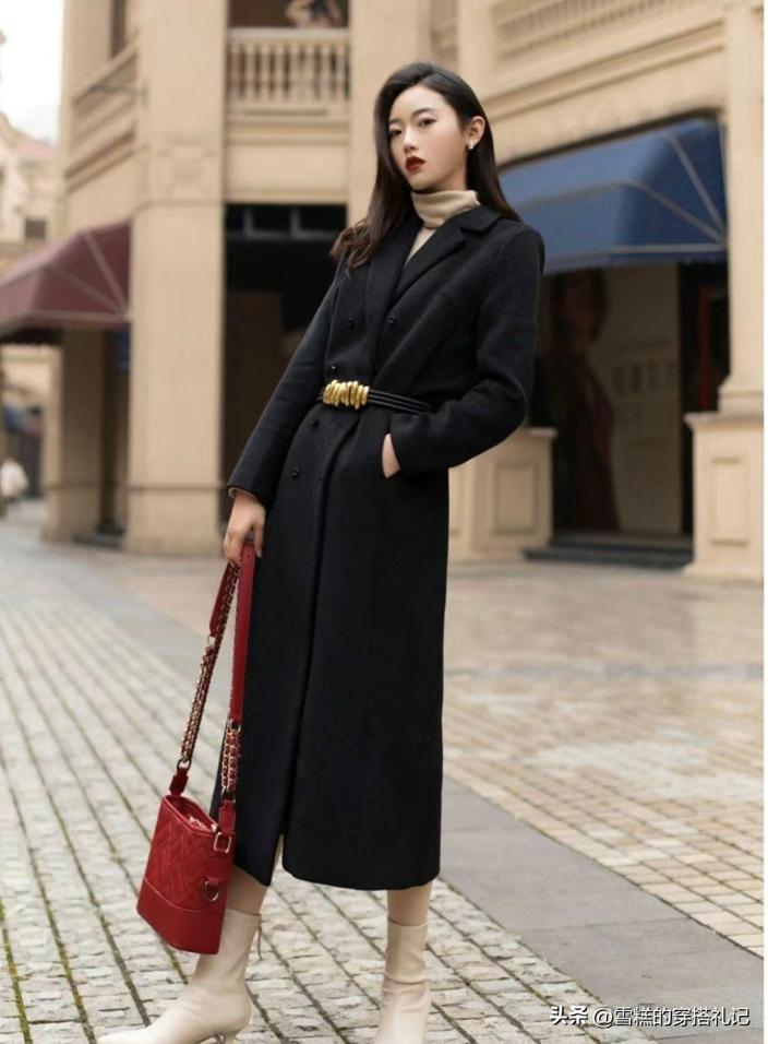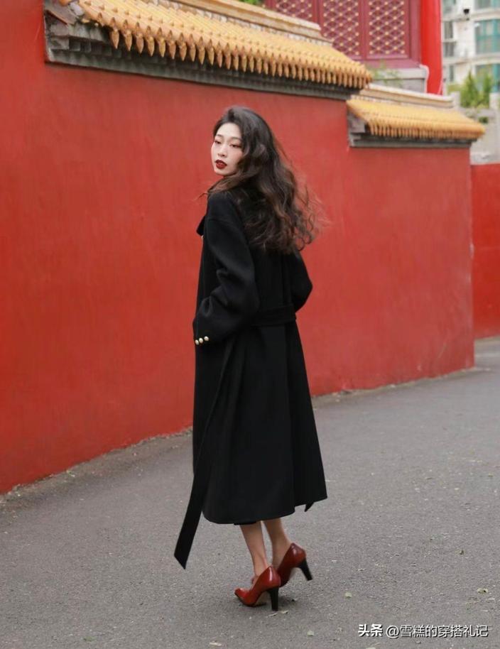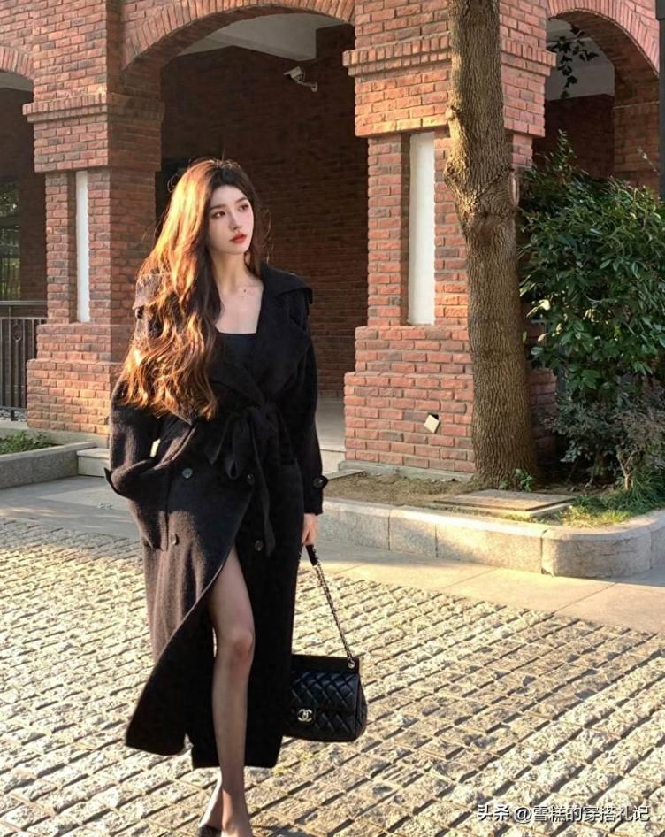 而且黑色這一款顏色,它真的是要比其他的暗色調更加的具有勾勒力。這一種線條走向的輪廓感勾勒真的是獨有的存在了,所以很推薦大家可以像街拍圖當中的女生一樣多多的搭配長款的設計,例如像黑大衣又或者是長款的裙裝都是非常的具有顯瘦感優勢的。