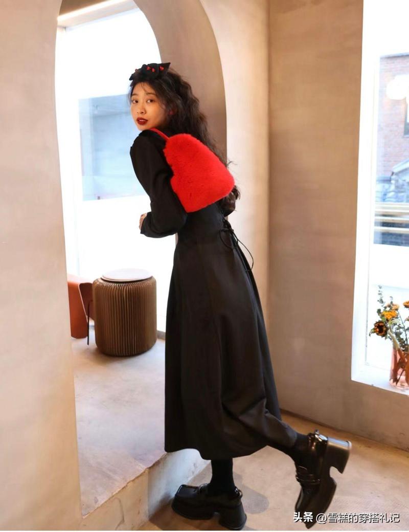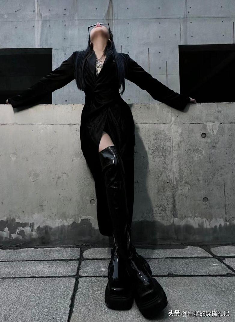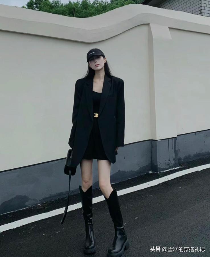 上一條我們已經說過了長款的黑色裙裝在進行搭配的時候最適宜的就是與長款的外套,又或者是自帶高級感的外套來進行別穿這個時候也一定要加入自帶高級感的鞋子,又比如像高跟鞋或者是靴子的系列最具有優勢和氣質了。