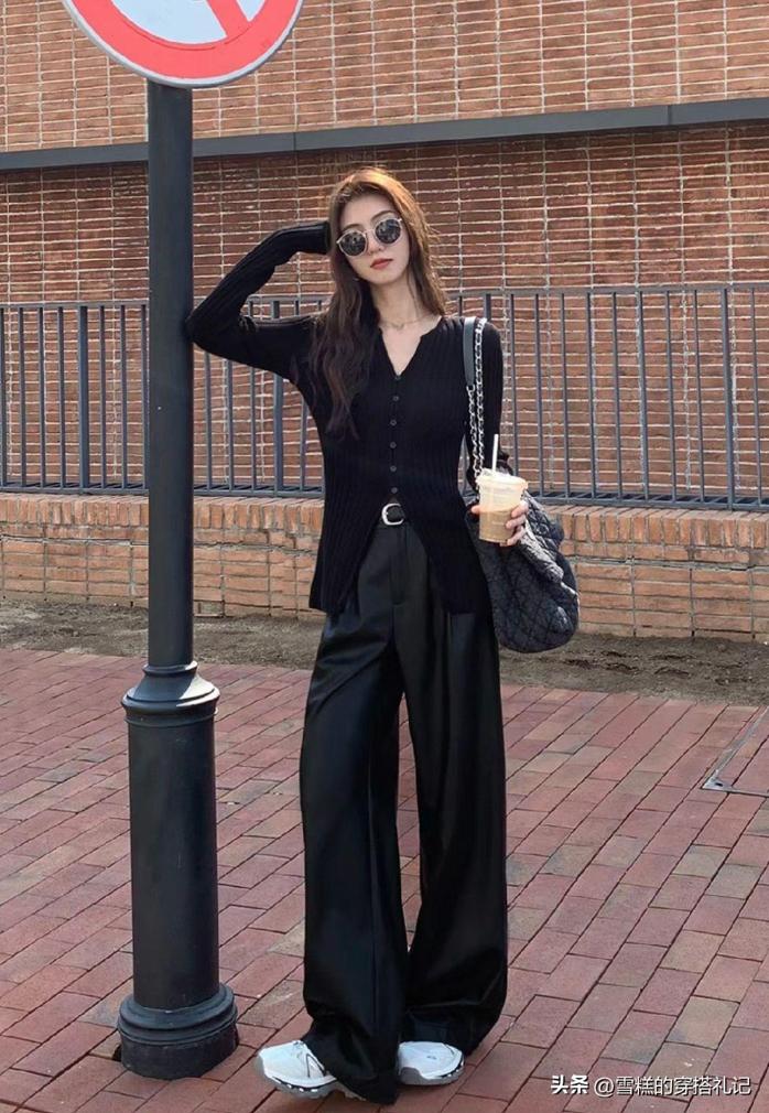 黑色這一款顏色真的是屬於非常具有顯瘦感的穿搭了,所以在組合進行運用的時候也建議大家可以將你的視覺重點放在輪廓感的呈現效果上面,一定要具有明朗修直的穿搭走向,又或者是內緊外鬆以及上下鬆緊對比的穿搭。