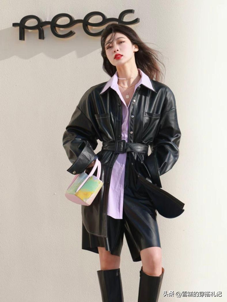 上海女生們所搭配的一身黑可不是將全身都用黑色包裹起來,而是整體所用的單品都是黑色系的系列。在組合起來的時候但是也有了留白的空間,例如圖中就將腿部的肌膚裸露了出來,給人的感覺,整體的效果真的是又有個性感又利落而且也有層次。