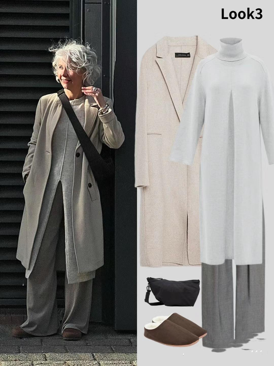 終於發現:“大衣+闊腿褲”更適合60+女人,等我老了也要這樣穿!