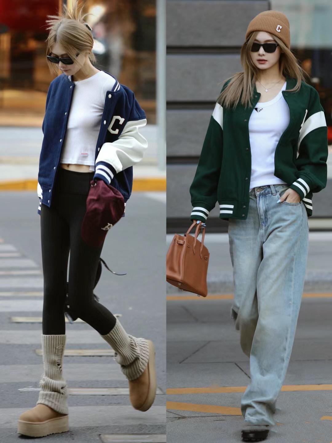 棒球服簡單又帥氣,透着活力十足的運動風,隨意地搭一件白色T恤,就時髦洋氣又醒目。想要熱辣醒目,就搭配鯊魚褲,想要率性活潑,就搭配高腰的闊腿牛仔褲。
