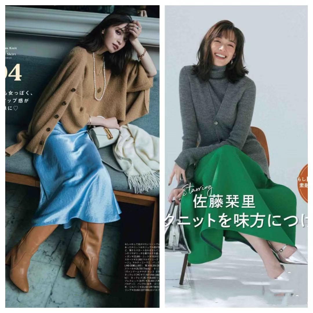 像這種亮色系的半身裙,我們可以選擇復古綠、或者水藍色。明亮醒目的顏色,讓你在年會穿搭中更加醒目。日常中可以配基礎款的毛衣、或者西服外套來穿着。
