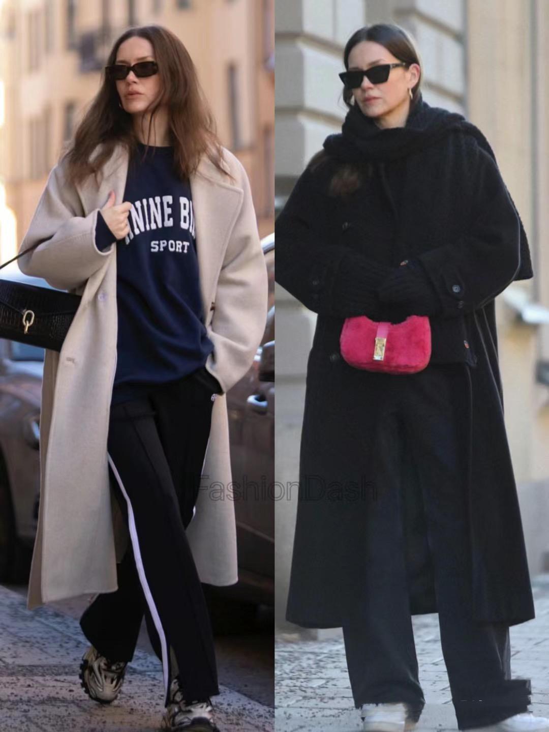 仔細觀察歐美風穿搭,就會發現今年火了一種新的穿法。那就是“大衣+直筒褲”,稍微寬鬆但比較挺闊有型的大衣,配上褲筒筆直的直筒褲,簡單高級又提氣場。