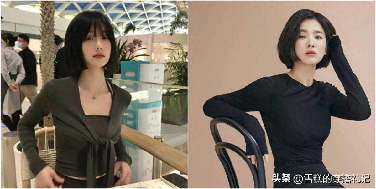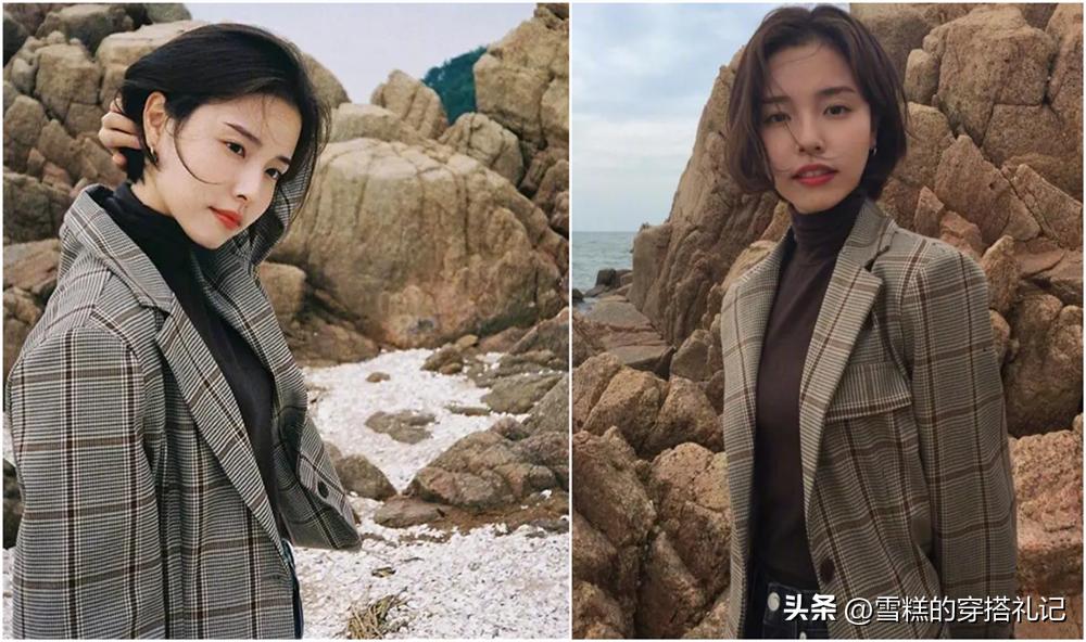 像這些比較高的領口,或者剛好卡在髮尾處的尷尬領口,比如說襯衫領、polo領之類的,穿上身就剛好卡在了髮尾的位置,很容易改變齊耳短髮的造型,甚至會顯得很凌亂,並且也更容易顯脖子短。
