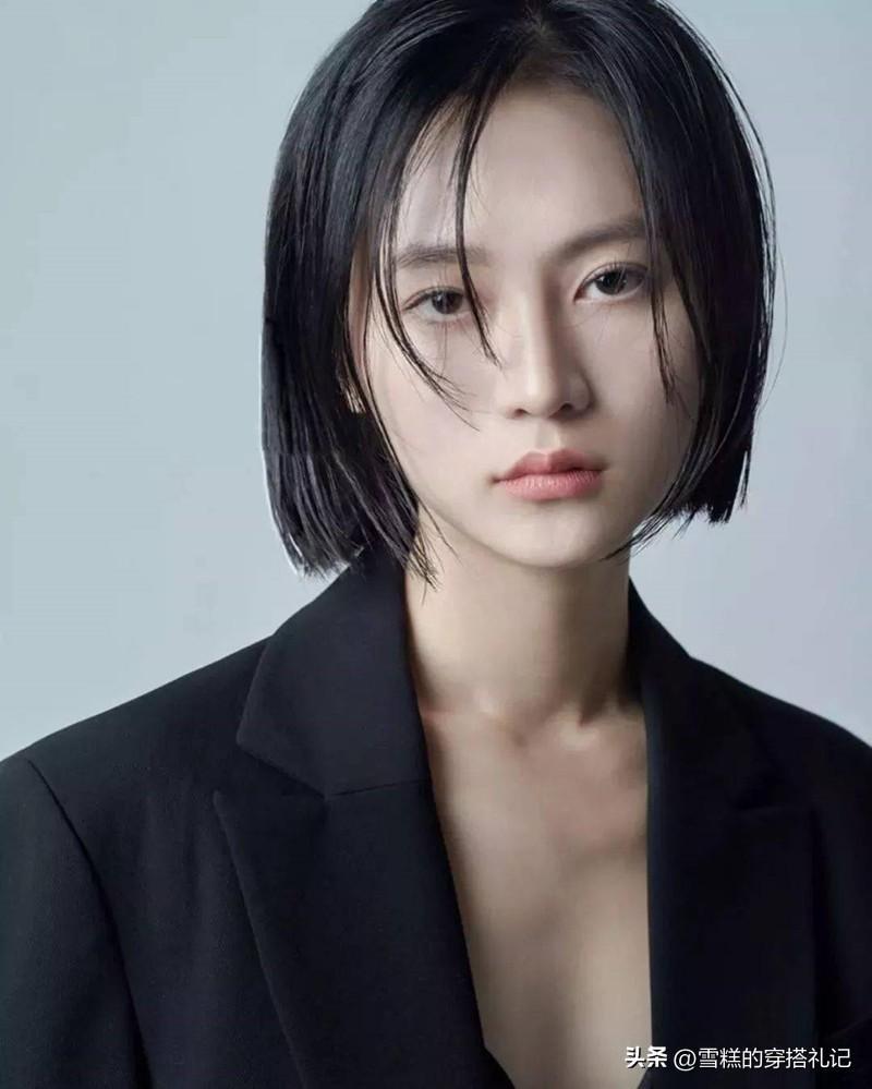 因爲臉型足夠精緻,線條也很流暢,無需刻意遮擋,所以可以讓齊耳短髮的髮尾稍微外翹,來增加整體形象的靈動性,也不至於顯得很死板,並且也能進一步去凸顯臉部的精緻感。