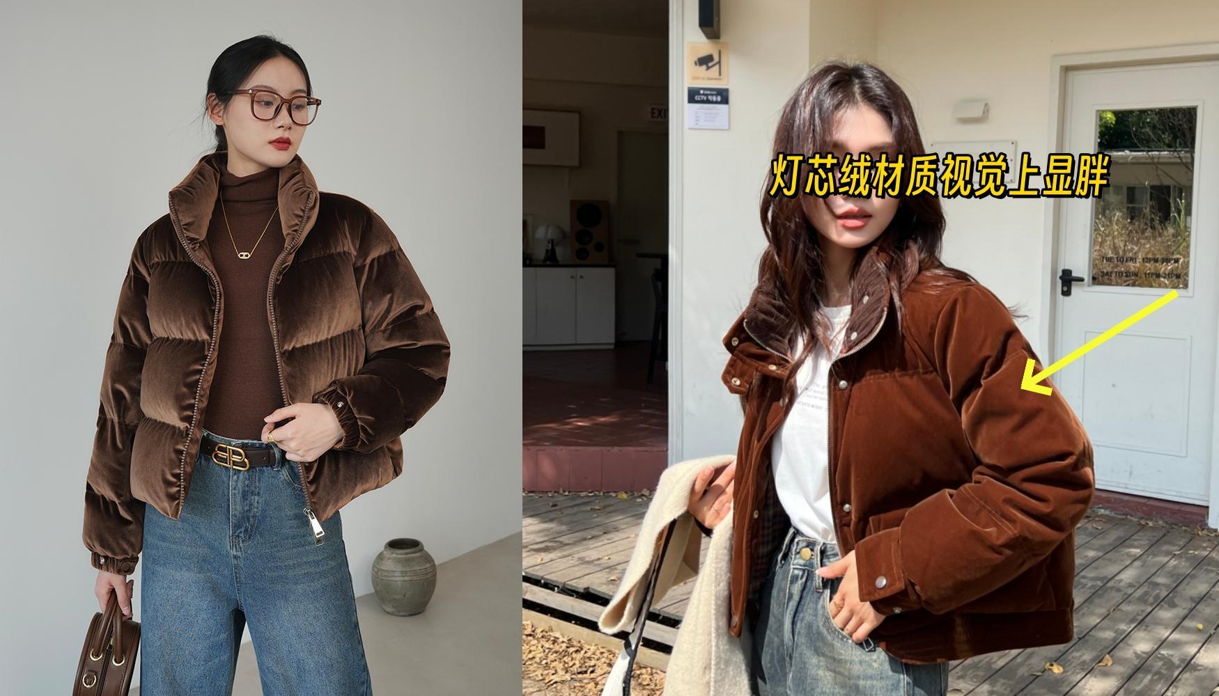 雖然說絲絨很適合冬天,但是絲絨羽絨服,真的不建議購買。爲什麼呢?因爲絲絨本身給人的感覺比較偏古典,如果搭配不當,就會顯老10歲。加上這個蓬蓬的感覺,冬天穿真的太顯胖了。