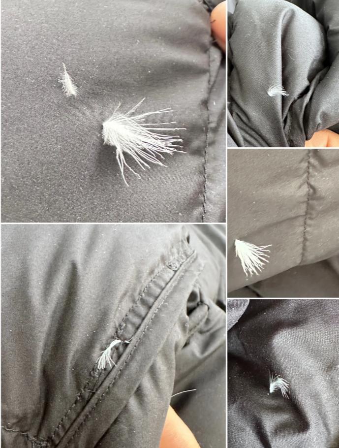 還有一些羽絨材質比較差的,根本不是羽絨,像碎羽毛杆填充的,基本上都是會掉毛。