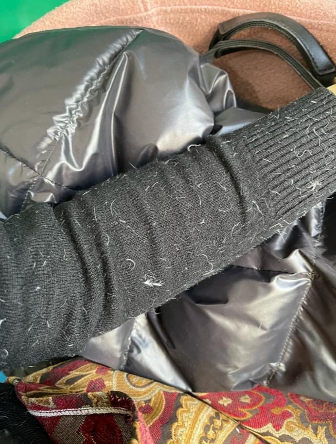 買羽絨服切記不要選那種會掉毛,很明顯從外面和內裏就開始炸毛的款式,如果一開始就掉毛,那後續在穿着的過程中,你會覺得很煩,尤其是內搭是黑色的毛衣,非常誇張。