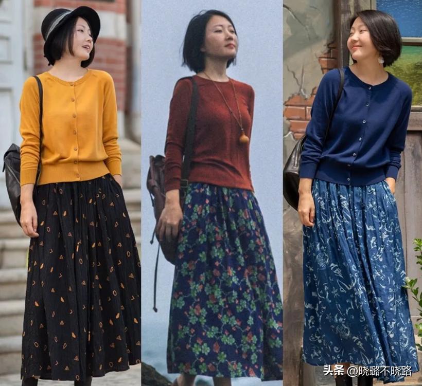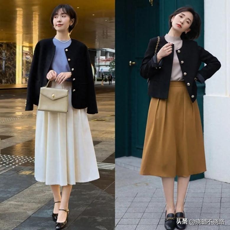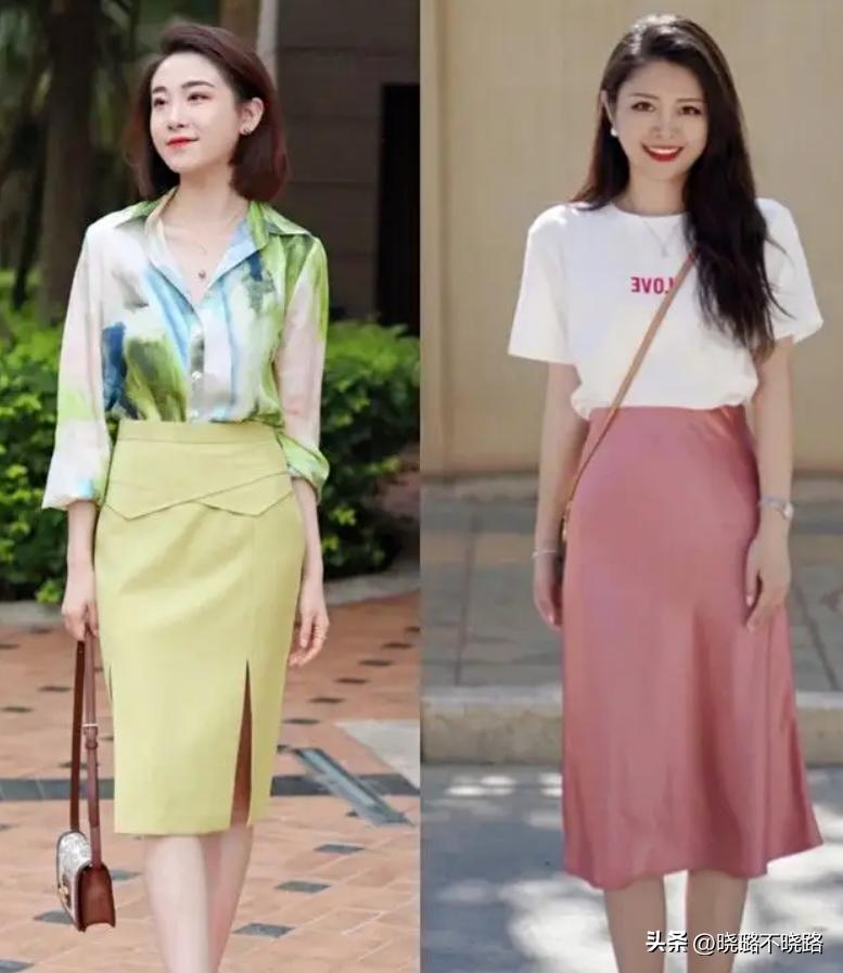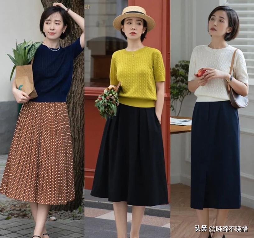 除了連衣裙以外,打底褲是中年女性羣體第二喜歡的單品,但是它非常講究腿型的纖細感,腿上有肉的話就會暴露腿短、腿型不好看的問題。而半裙設計的版型有很多種,直筒、傘形、a字型等,都有修飾作用,肉眼可見地比打底褲優勢強。