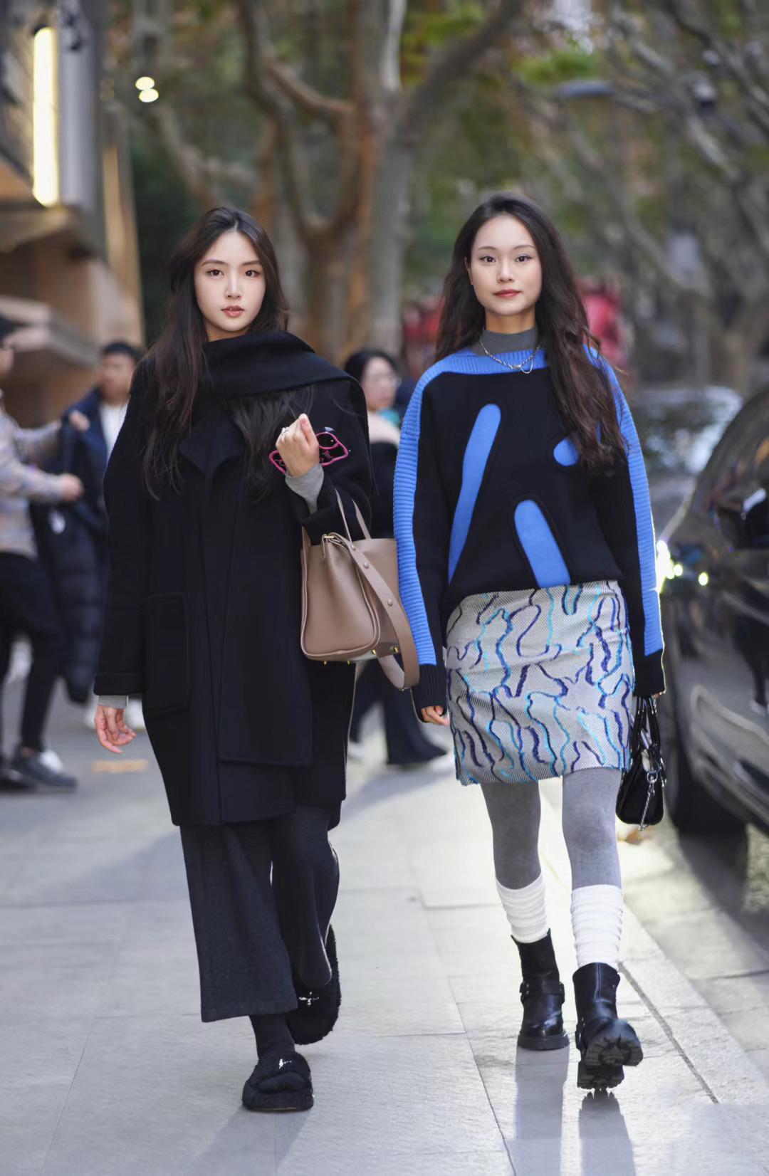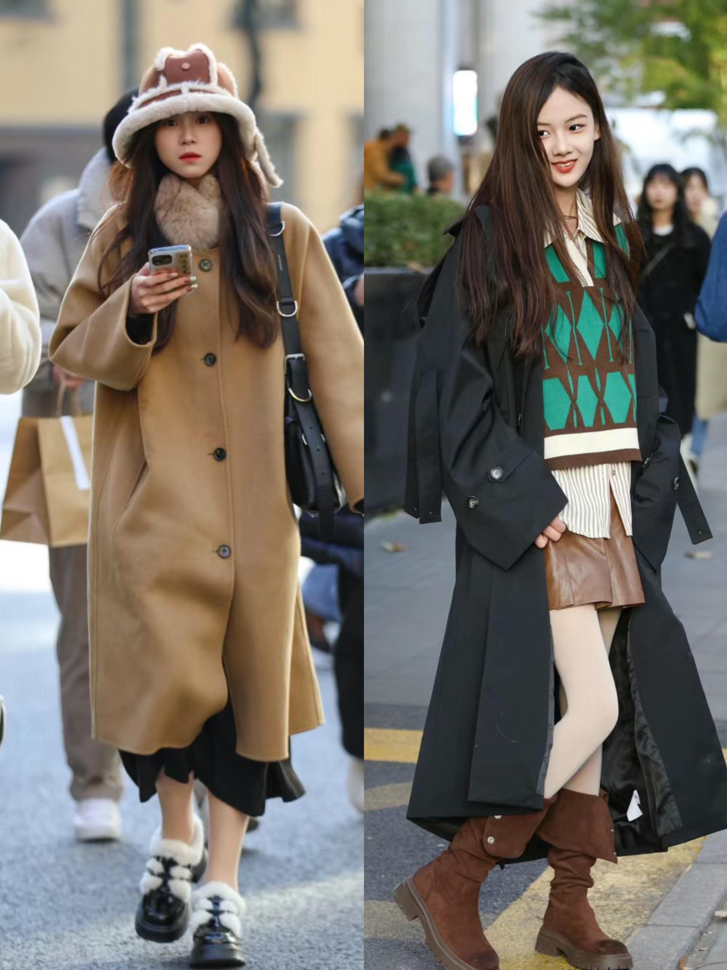 被上海街拍圈粉了:穿大衣、羽絨服,配長裙、長褲,簡單又高級