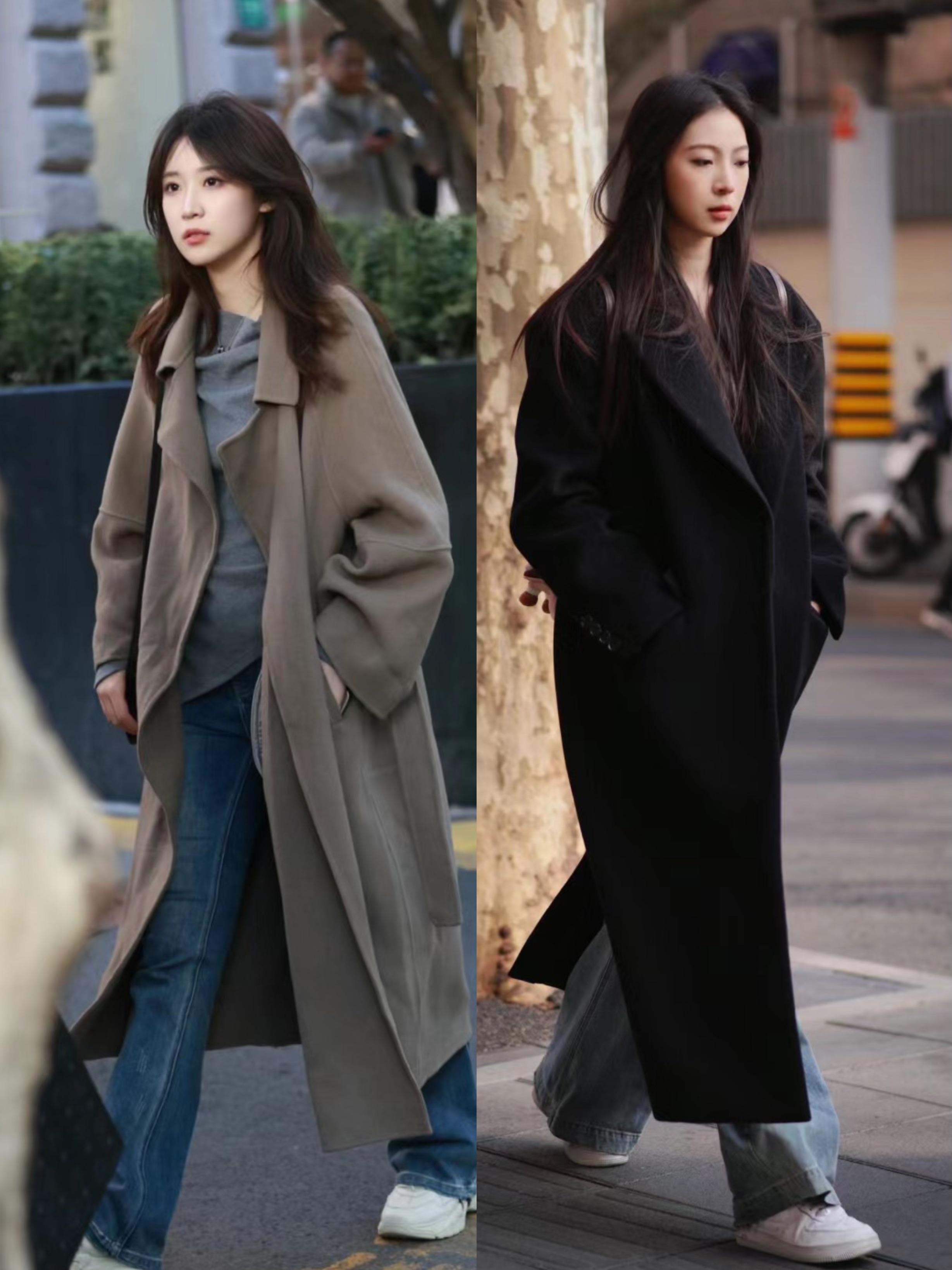 中長款的大衣,不挑身高、是一種更容易駕馭的風格。剛剛到大腿長度的大衣,穿起來也很穩重,繭型的款式能包容身體形態的不足。