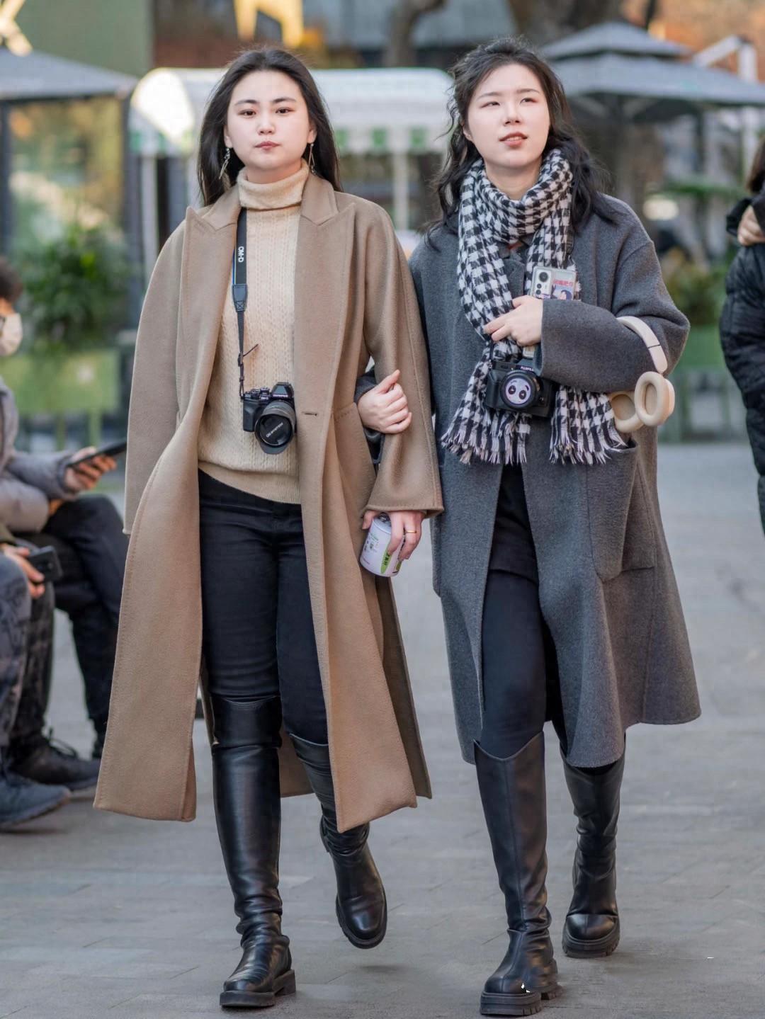 我們穿一件相對輕薄的羊絨大衣,可以配厚底的長筒靴。厚底的長筒靴,一種剛剛及膝的長度,在不經意間的瞬間露出大腿線條,層次感清晰又時髦摩登,看起來又美又貴!