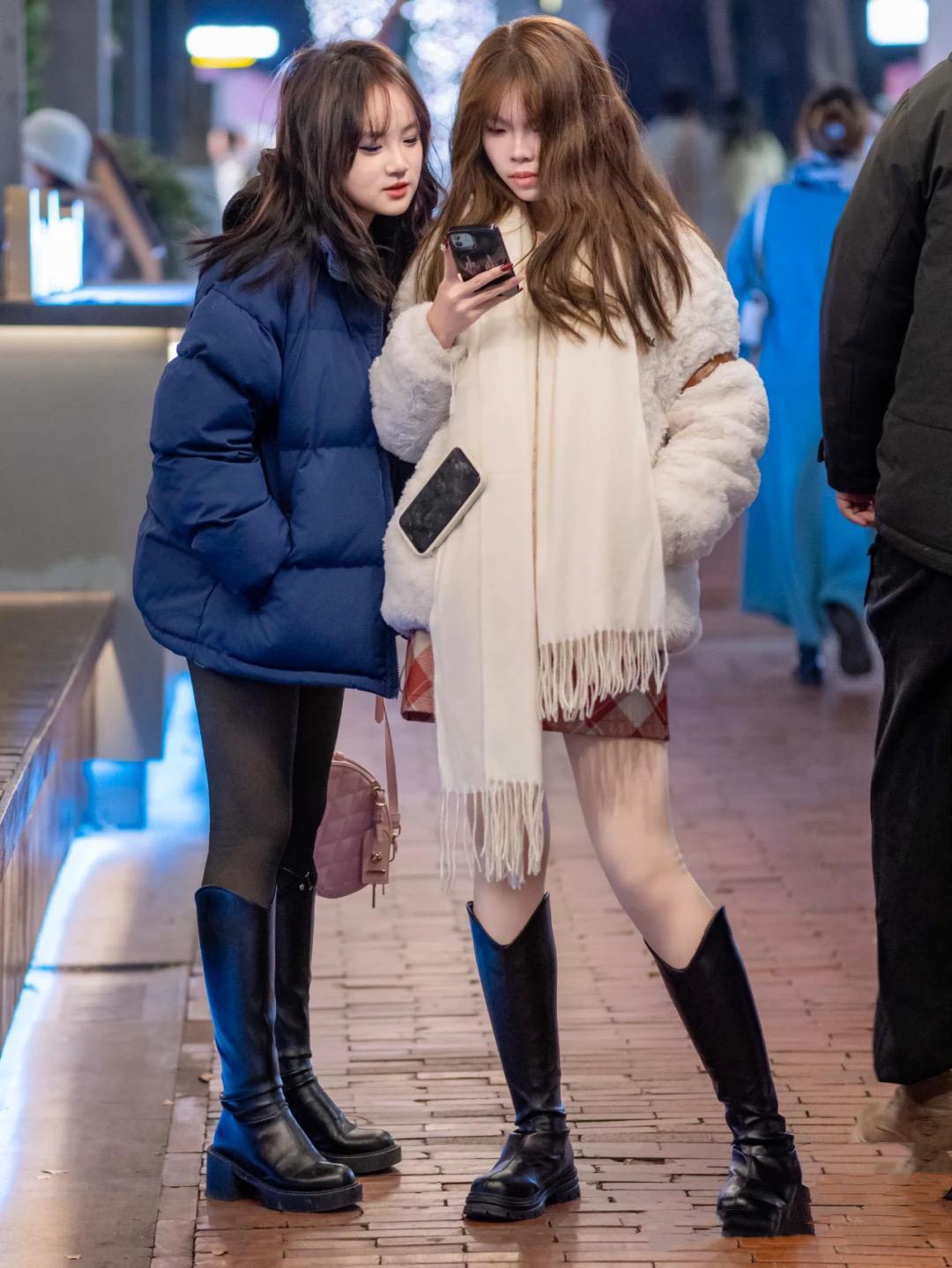 不管是帶有微透效果的打底褲還是光腿神器,我們都可以選擇比較細膩的質地,帶有加絨元素的款式,保暖性也更強。冬天裏配長靴來穿着,顯高又洋氣。