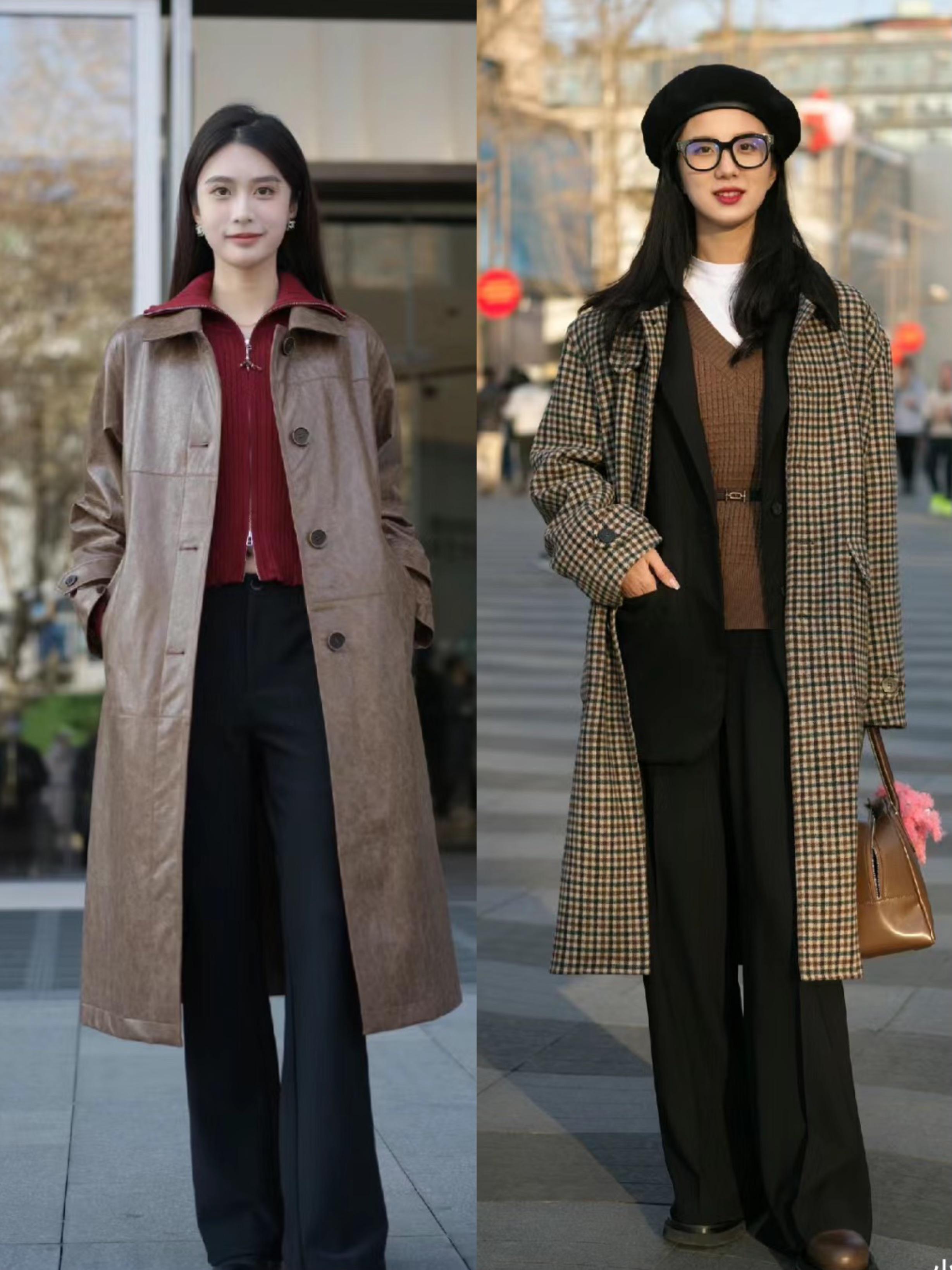 日常穿搭中,如果擔心多層疊穿顯得臃腫,可以直接用復古風大衣來搭配高腰的西褲。黑色系高腰西褲垂墜有挺拔,一定的寬鬆度更具備了包容性,顯得穿着者氣場強大。
